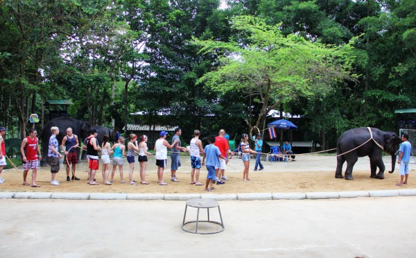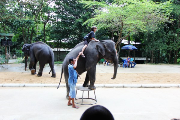 Первоначально нас привезли на основную базу, где проходило шоу слонов, катания на слонах и прочие развлечения.
