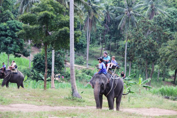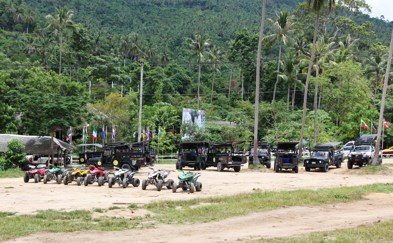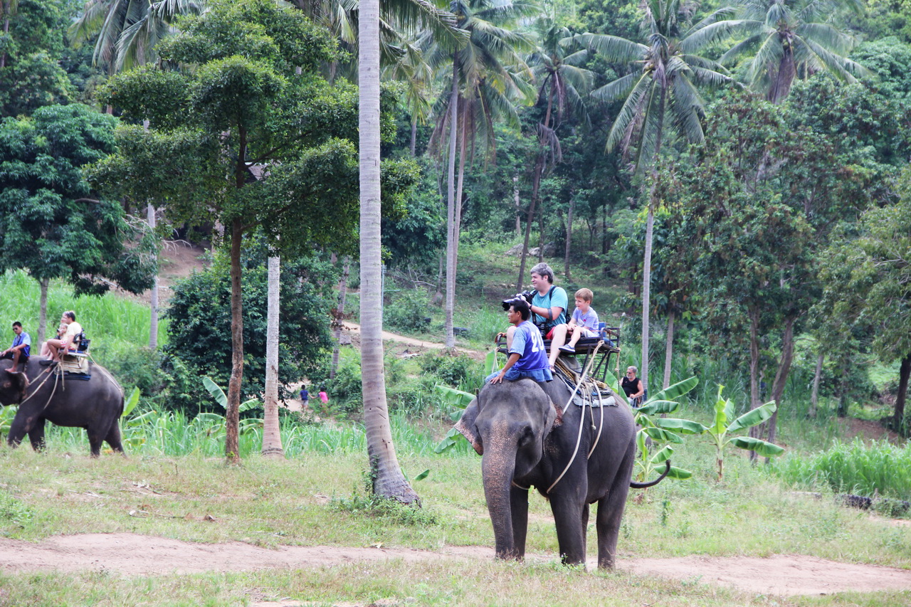 Подверглись традиционному (и вполне увлекательному, замечу сразу) развлечению на острове Самуи - катанию на джипах по горам, лазанию на своих двоих по горам, просмотру слоновьего шоу, катанию на слонах по горам, купанию в водопаде в горах - ну, в общем, получили полный комплект удовольствий. Выкладываю отчет.