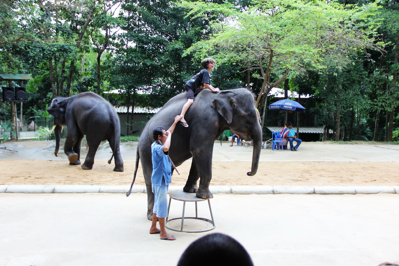 Ну и закончилось шоу коронным номером, во время которого давался ответ на вопрос: сможет ли трехлетний слон раздавить сорокалетнюю туристку или двадцатипятилетнего туриста.