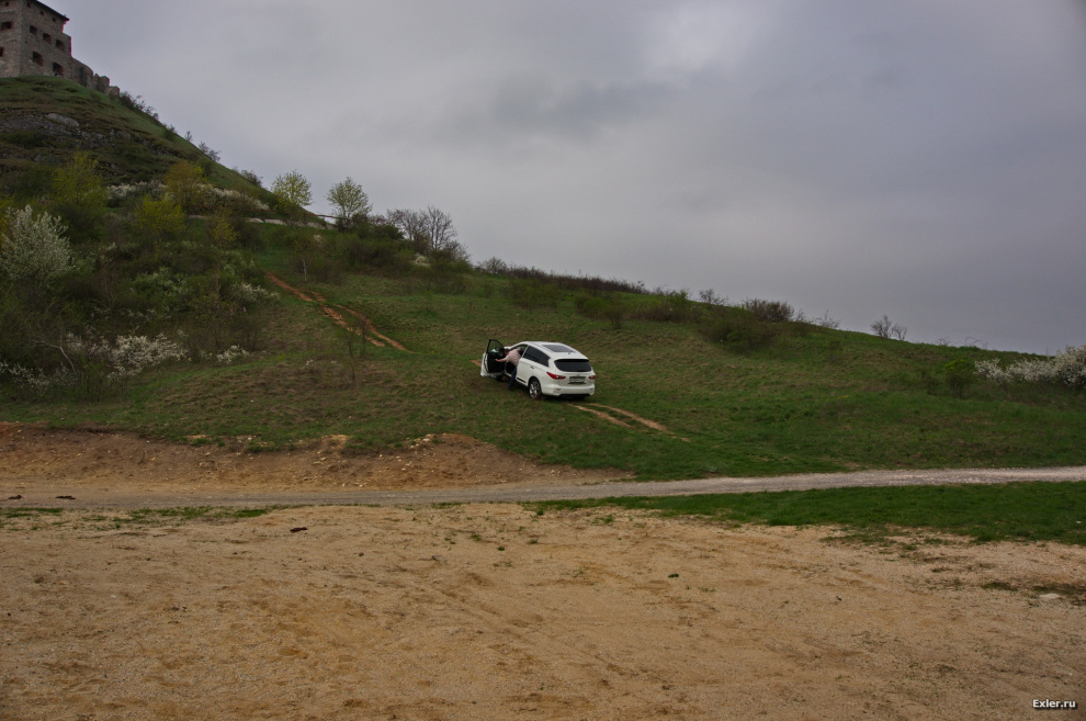 Но зато на гору к этому замку вела крутая дорожка, и на ней можно было порычать мотором и посмотреть, как ведет себя интеллектуальный полный привод. А он тут хитрый. Система постоянно отслеживает параметры поездки (рулевое колесо, педаль газа, скорость движения) и в сложных условиях до 50% мощности направляет на заднюю ось, а когда полный привод не нужен (на трассе, например), автоматом всю мощь направляет на передние колеса.