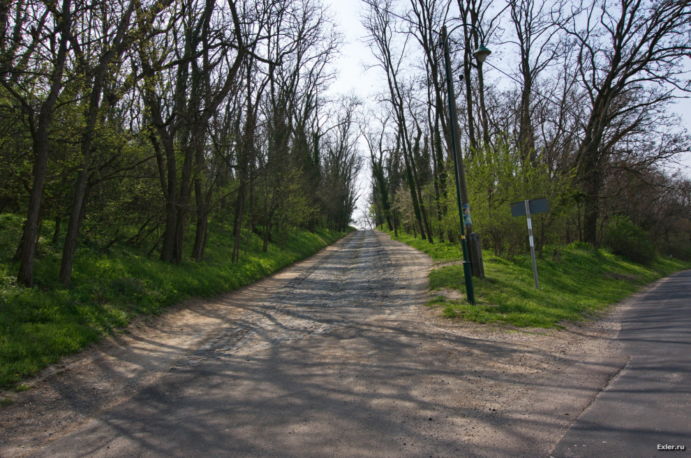 Вот еще интересная дорожка: наполовину грунтовка, наполовину какие-то булыжники, при этом идет резко вверх. Машина по ней взлетела вмиг, победоносно разбрасывая булыжники.