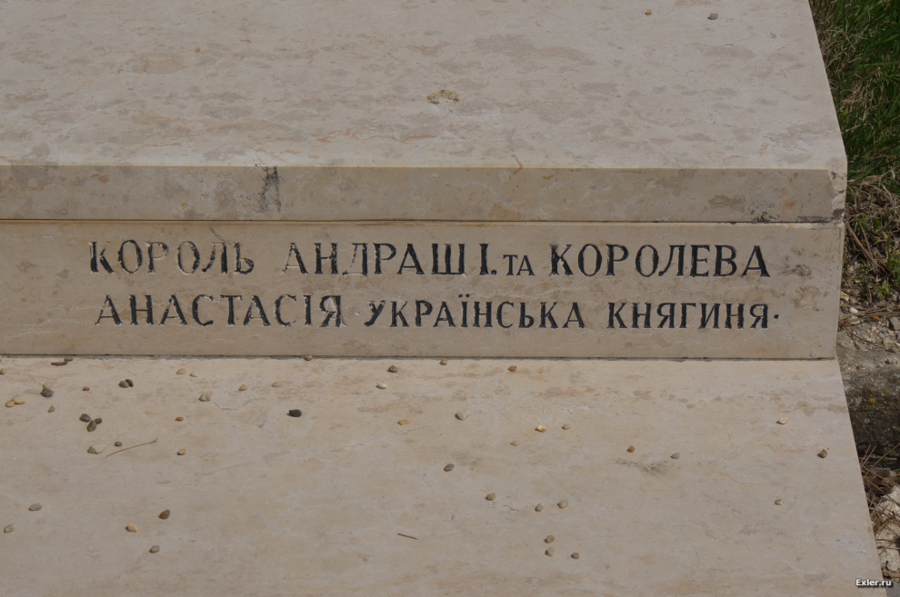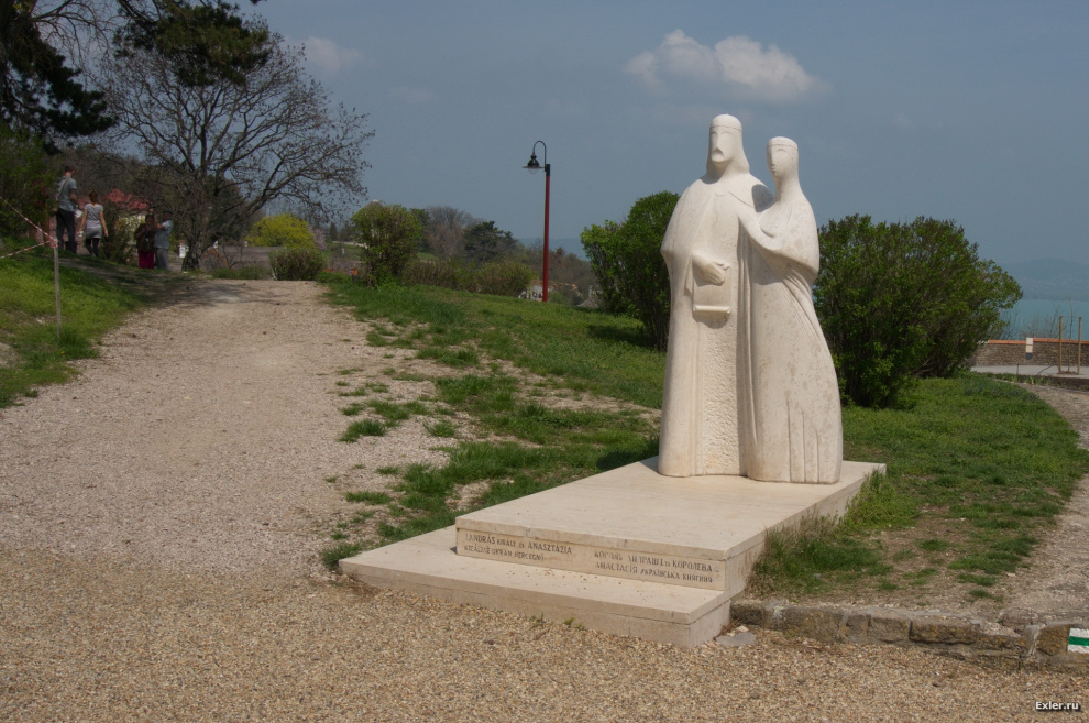 Справа - венгерская королева Анастасия, которая тут почему-то именуется украинской княгиней. Она вообще-то дочь Ярослава Мудрого и Ингигерды Шведской, сестра Анны Ярославны, королевы Франции, и Елизаветы Ярославны, норвежской королевы. С чего она вдруг стала "украинской книгиней" - то ведомо только послу Украины в Венгрии, который, как рассказывали местные, финансировал создание этого страннейшего памятника. На вопрос, как сами венгры оценивают эту надпись, местные отвечают, что Дарта Вейдера они всегда уважали, а украинский посол пусть развлекается, как ему угодно. Лишь бы не курил.