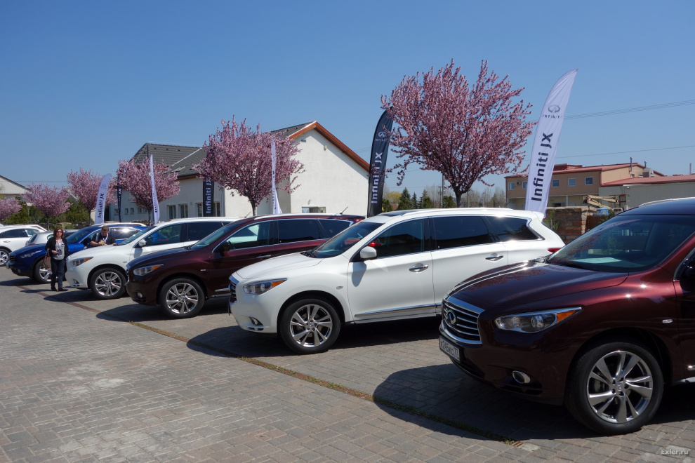 Мы ездили на модели Infiniti JX35 13MY (с московскими номерами, замечу, что придавало дополнительную пикатность ситуации).