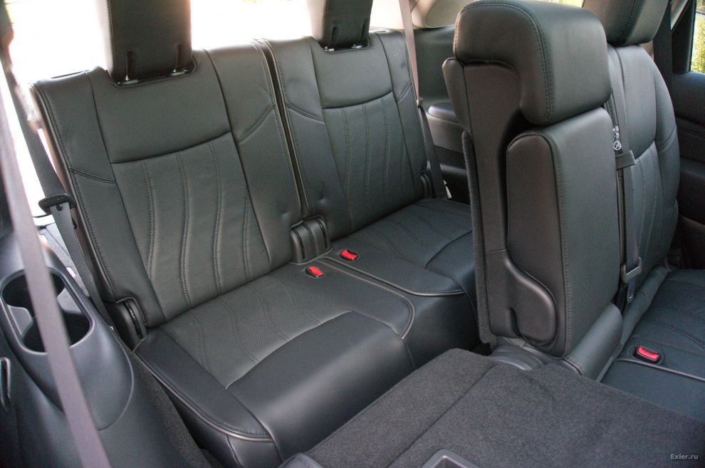 Но перед поездкой осталось время немного поизучать автомобиль изнутри. Новый Infiniti JX35 преподносится под слоганом "Превосходство в полном объеме". Машина - семиместная (вот вам полный объем), у нее есть три ряда сидений.