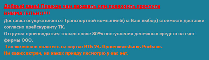 Купить, кстати, может любой желающий, условия поставки простые: переводите деньги на счет или карточку продавца. Причем там так трогательно написано, цитирую в орфографии оригинала.