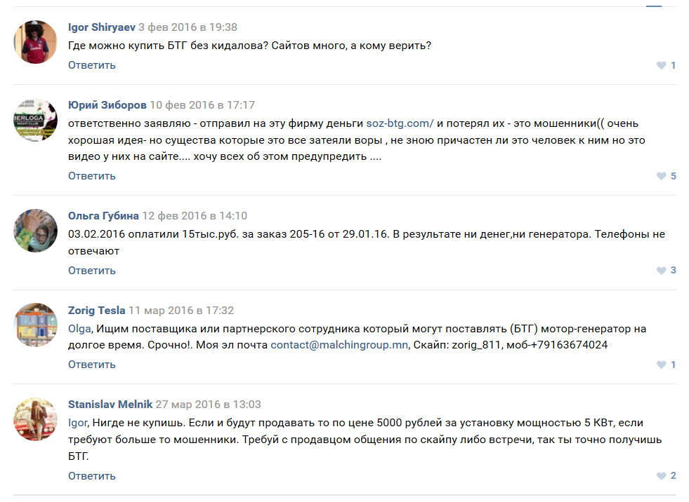 Наберите в гугле "БТГ генератор отзывы". Это не пара-тройка кретинов .... просто полный рпц.