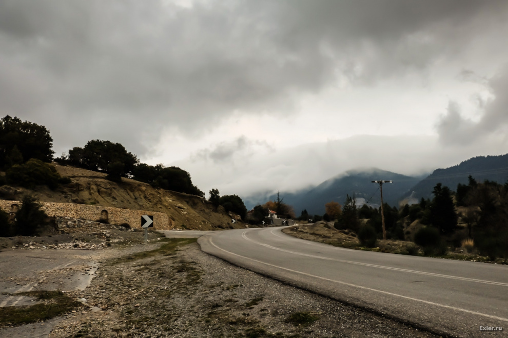 Вам нужно было из Олимпии в Спарту поехать. Вот там жесть. Постоянный серпантин, дорога петляет из одной стороны в другую. Места живописнейшие. Шаг чуть вправо - пропасть )