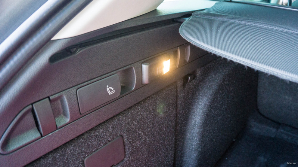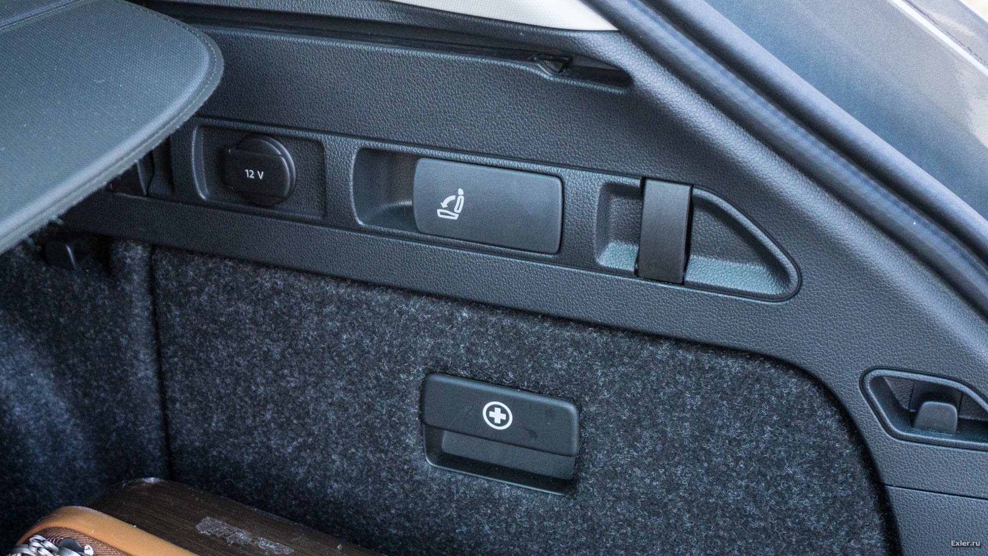 Еще поизучали багажник. Там, что интересно, тоже много полезных мелочей. Прямо из багажника можно нажать кнопку и откинуть задние сиденья - чтобы, например, положить крупногабаритный груз.