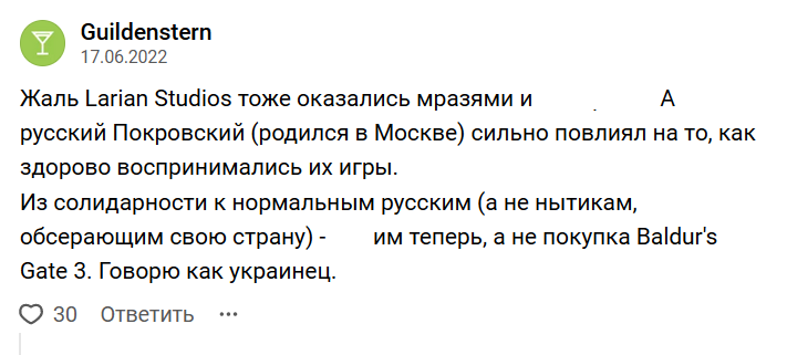 И вообще, откуда взялся этот стереотип, что войны делают из людей садистов? Я вот наоборот сколько знаю воевавших, это очень достойные люди, они действительно понимают цену жизни, в отличие от диванных крикунов, возомнивших себя святошами. Приятель у меня есть, в Чечне воевал, так он говорит, что если бы он туда не попал, запросто мог бы стать бандитом. И ещё раздражает такая наивность, что мол вот эта сторона воюет честно, а другая свинячит. Не было ещё ни одной войны, где бы не совершались так называемые военные преступления. В таких условиях сложно держать себя в рамках, рано или поздно кто нибудь ломается и делает такие вещи. Но когда говорят о таких вещах, как о системе, что все поголовно садисты, что контактники, что добровольцы, что мобилизованные, то лучше сразу выйди на улицу, подойди к первому встречному и скажи в лицо, что он убийца.