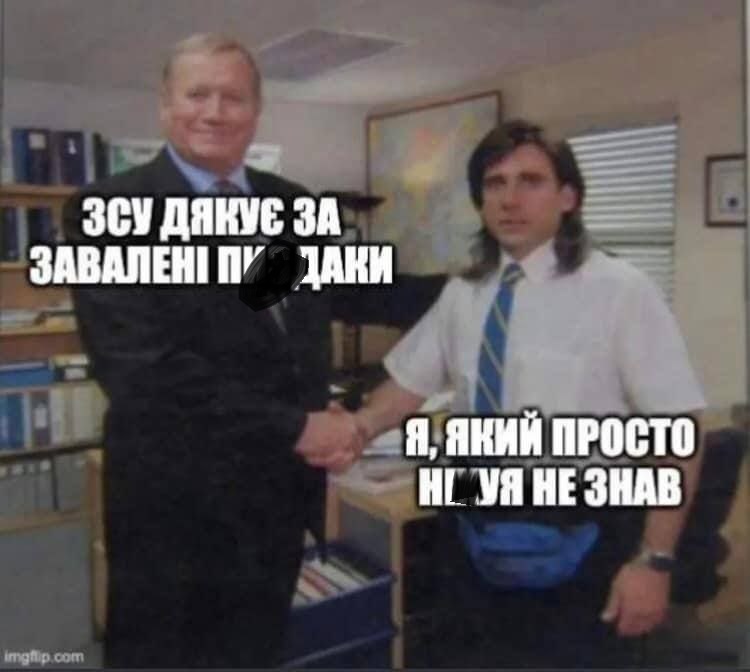 - хотя бы пятеро, кто сослепу решил, что картинка - не самоирония украинцев, а злобный приказ, который адресован кому-то из присутствующих лично,
