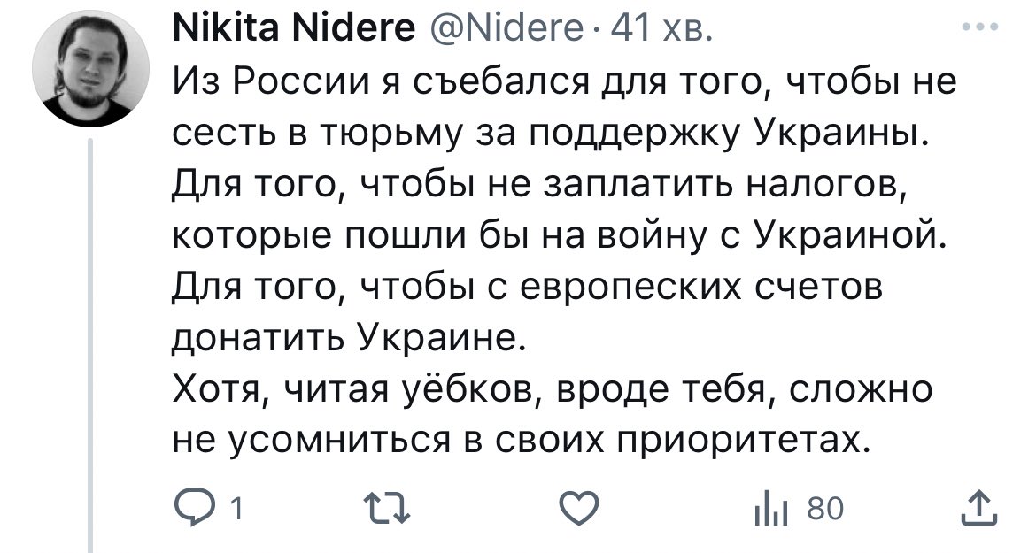 Не все россияне одичавшие моральные уроды, но, если раньше принадлежность россиян к виду человеков не обсуждалась, то сейчас по каждому из них мне надо убедиться персонально.
