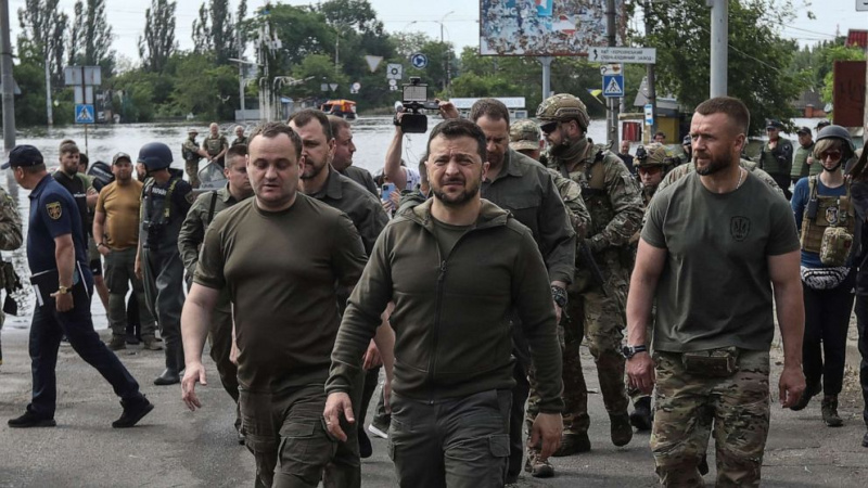 Президент Украины Владимир Зеленский посещает затопленную территорию после прорыва дамбы в Новой Каховке. Photo: ReutersХорошо осведомленные неофициальные проукраинские источники сообщили, что юго-восточный фронт становится все более активным, и есть неподтвержденные изображения и сообщения о том, что в наступлении участвуют новые современные украинские танки Leopard 2 немецкого производства.