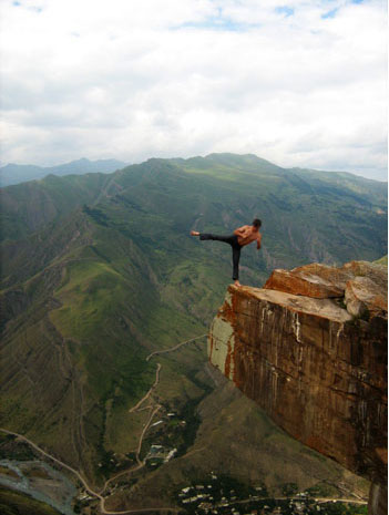 Посмотрел фото. Блин, в горах на высоте там же ветер, причем сильный, может и с порывами, вот так дунет чуть-чуть случайно и поробуй удержи равновесие на руках, на ноге или в полете, когда приземляться будешь.