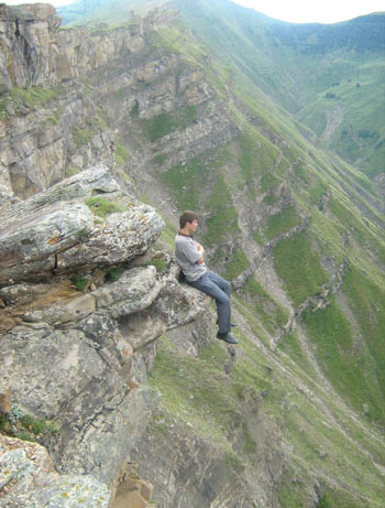 Да ну, у меня тоже есть похожая фотка себя, и не скажу, что было очень трудно залезть и ножки свесить (главное вниз не смотреть, хехе). Многие спрашивали, "а как ты вообще там оказался?" Но тут очень много зависит от угла съемки - если при кадрировании вырезать вполне безопасные подступы к скале/обрыву и наоборот показать побольше открытого пространства вокруг/под, то это здорово увеличивает впечатление. И никакой фотожабы.