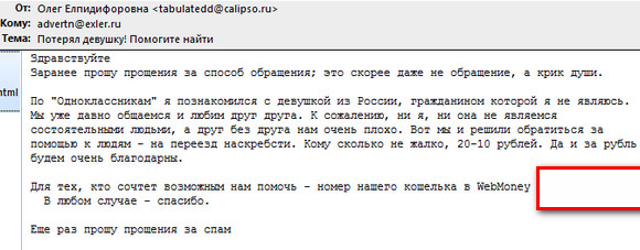 Кинулся проверять почту, ан нет, не пришло мне такое письмо. Останется парнишка без моей копеечки (((