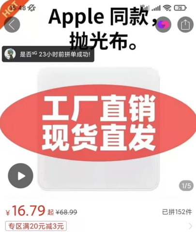Согласно публикации портала MyDrivers, на сайте онлайн-ретейлера Pinduoduo уже можно заказать копию «яблочной» салфетки по цене всего $2,5 в пересчёте с китайской валюты. Согласно описанию товара, это «та же модель, что и на официальном сайте Apple». Источник отмечает, что единственное отличие новинки от более дорогой версии — это отсутствие фирменного логотипа.