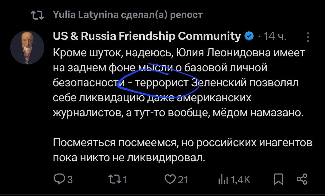 Скорее, это у тебя - родственные латынинские пропагандонские нарративы. Именно этим она и занимается - рассказами про "украинский режим" и.т.д. Это и есть типичные рашистские нарративы - о которых спрашивал еще один такой персонаж ниже в коментах. Идет захватническая война, одна сторона вторглась и хочет уничтожить вторую - и тут вылазит какая-нибудь латынина или вот ты например, и начинают рассказывать про "два родственных режима" приравнивая тем самым стороны жертвы и агрессора.