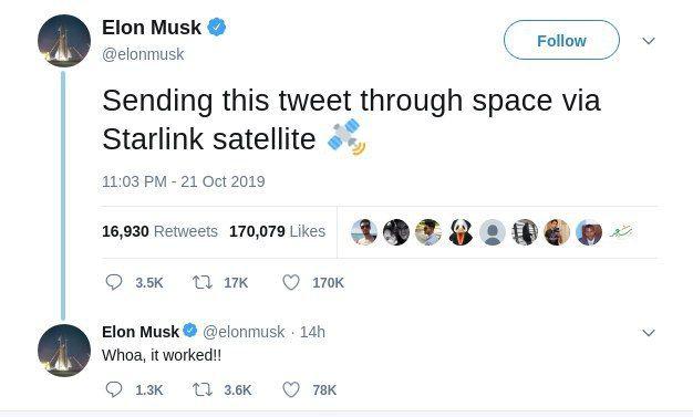 Маск отправляет сообщения в твиттер с помощью спутников Старлинк