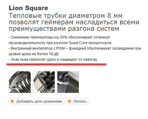 От выхода из строя ваш кулер защитит специальный знак льва, разработанный инженерами ASUS с применением нанотехнологий. Знак льва - чтобы не сгорело!