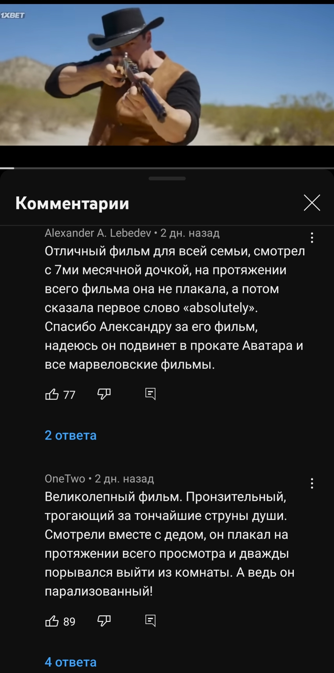 Фильм, конечно, говно. Это очевидно. Хотя, кто знает. Вон, даже у Уве Болла было парочку более-менее смотрибельных лент. Печально другое. Вестерн, увы, закончился как жанр. Последний великий вестерн это "Непрощенный" Иствуда. Ну, еще "Мертвец", хотя там вестерн только по форме. Как и "Джанго освобожденный". А так жанрово вестерн окончательно утвердился среди треш-мувиков. А жаль... У него была классная история.