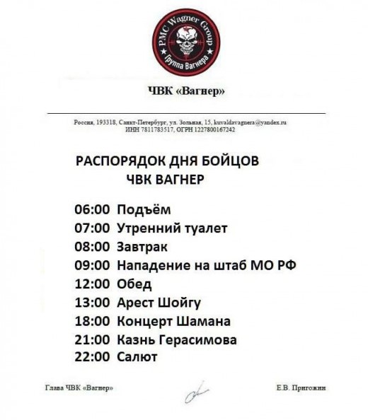 Да, спасибо, но это просто заявка Пригожина про вертолёт. Она полезна больше тем, что можно оценить психическое состояние Пригожина.