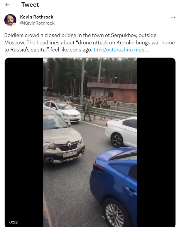 Z военкоры пишут - "множество колонн техники движется из лнр на москву, в т.ч. с бронетехникой. Интервалы между техникой ~100м, против ударов авиации"