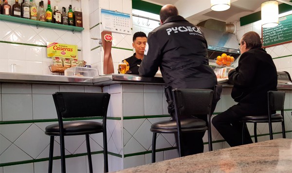 Служба охранника государственного учреждения - опасна и трудна. Настолько трудна, что уже в 10:30 утра охранник вынужден вознаградить себя бокальчиком пива, чтобы не дай бог не перетрудиться.
