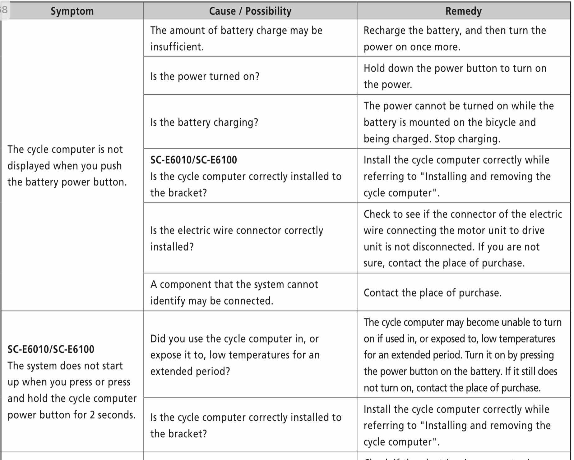 «If built-in battery of cycle computer isn't charged sufficiently, the power will not turn on.