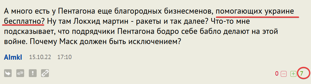 P.S. Вот что баксы животворящие делают. Контрактики в будущем планирует с Мордором... Вперёд, Илон, повар Женя этим путём уже ходил. Плешивая банда не простит выполнение секретного контракта Пентагона, в результате которого украинцы сорвали их планы.