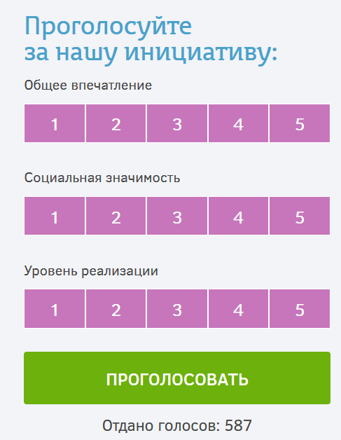 Во-вторых, нажатие на кнопку "Проголосовать" снизу - ничего не дает. (Да, у гражданской инициативы вот такие чудесные программисты.) Чтобы проголосовать, нужно в колонке справа поставить оценки по трем параметрам, после чего нажать кнопку "Проголосовать" под этими оценками.