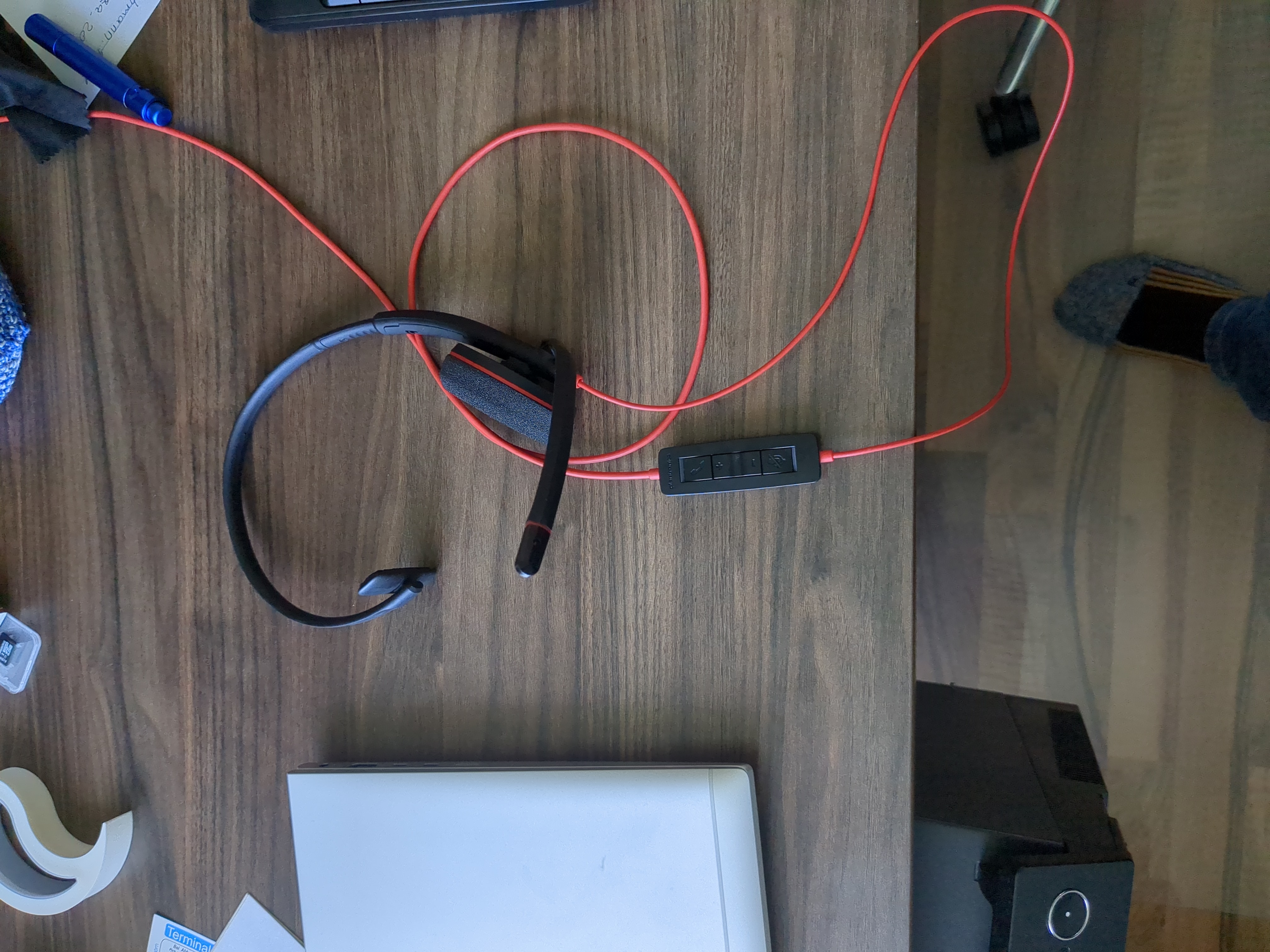 То же самое, только Jabra Evolve 2 65. Минус - сваливаются с головы при наклоне вперёд-назад, ну и микрофон внешний. Плюсы - качество звука, аккумулятор держит неделями, держат связь по Bluetooth чуть ли не дальше, чем бьёт WiFi (другой этаж, противоположная сторона дома, через бетонный потолок и несколько стен, по прямой метров 10 - без проблем).
