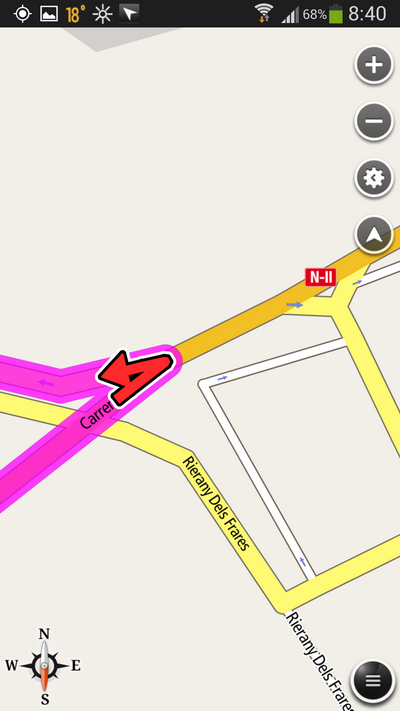 Зато когда прокладывает дорогу обратно на автостраду, то она считает, что с N-II есть прямой съезд налево. А его там в жизни никогда не было, надо объезжать, повернув направо.