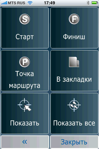 Как вы думаете, что вызывает кнопка Finish? Окончание маршрута? Нет. Она вызывает меню: фавориты, закладки, перекрестки и так далее. Кнопка Menu также вызывает меню. Но другое.