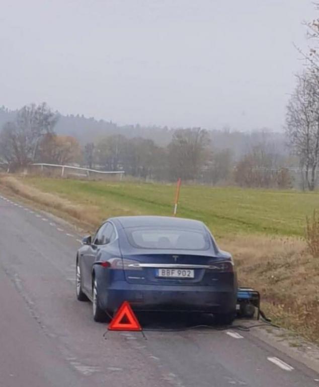 Может просто в багажник генератор положить и ехать дальше? 😄 А вообще ж видео было, как мужик на тесле попросил взять его на буксир, и пока его тащили он еще и батареи зарядил свои.