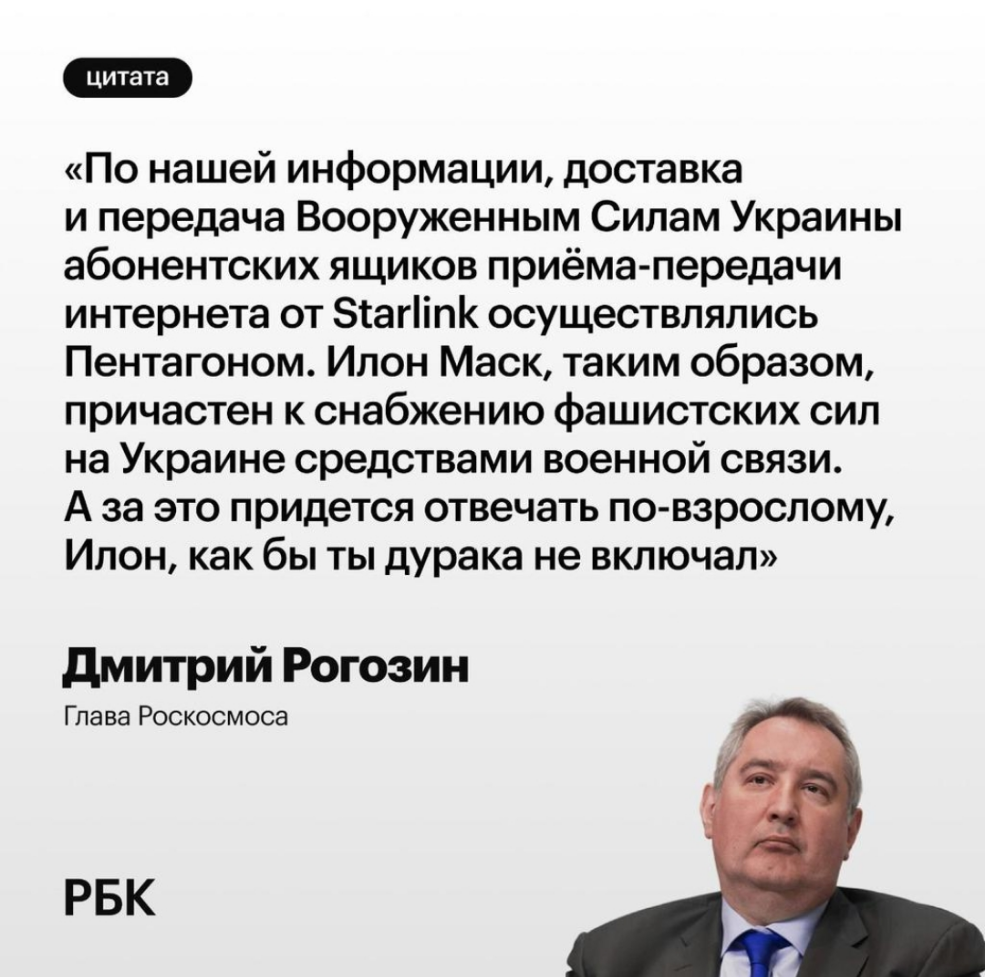 Мне вот интересно, как Рогозин собирается заставить Маска «отвечать по взрослому»? Поедет в США морду бить? Примерно такого уровня угроза