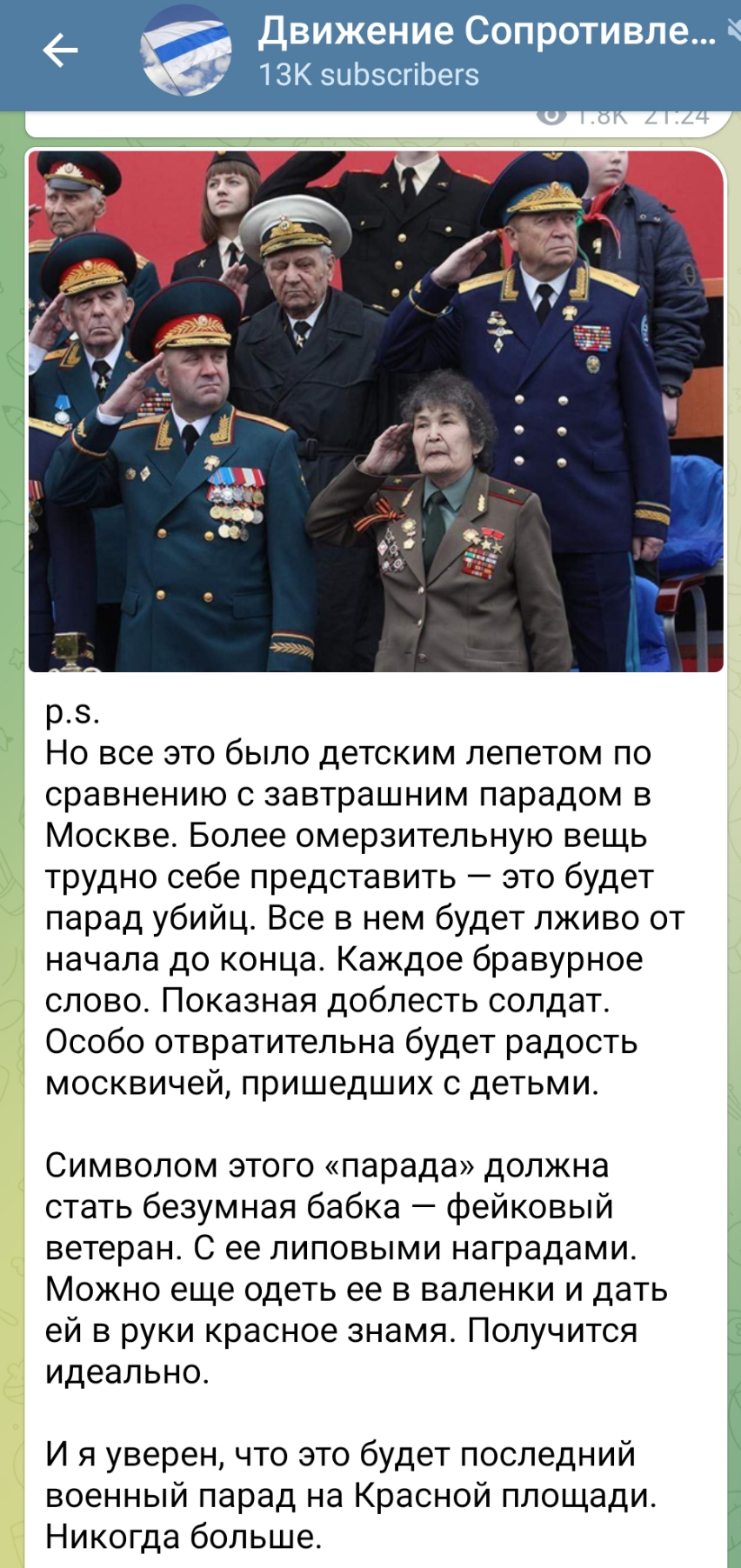 А я никогда не думал, что придет время, когда я про своих родителей, закончивших войну 2-го мая 1945-го в Берлине, скажу: "хорошо, что они до этого не дожили"... 😒