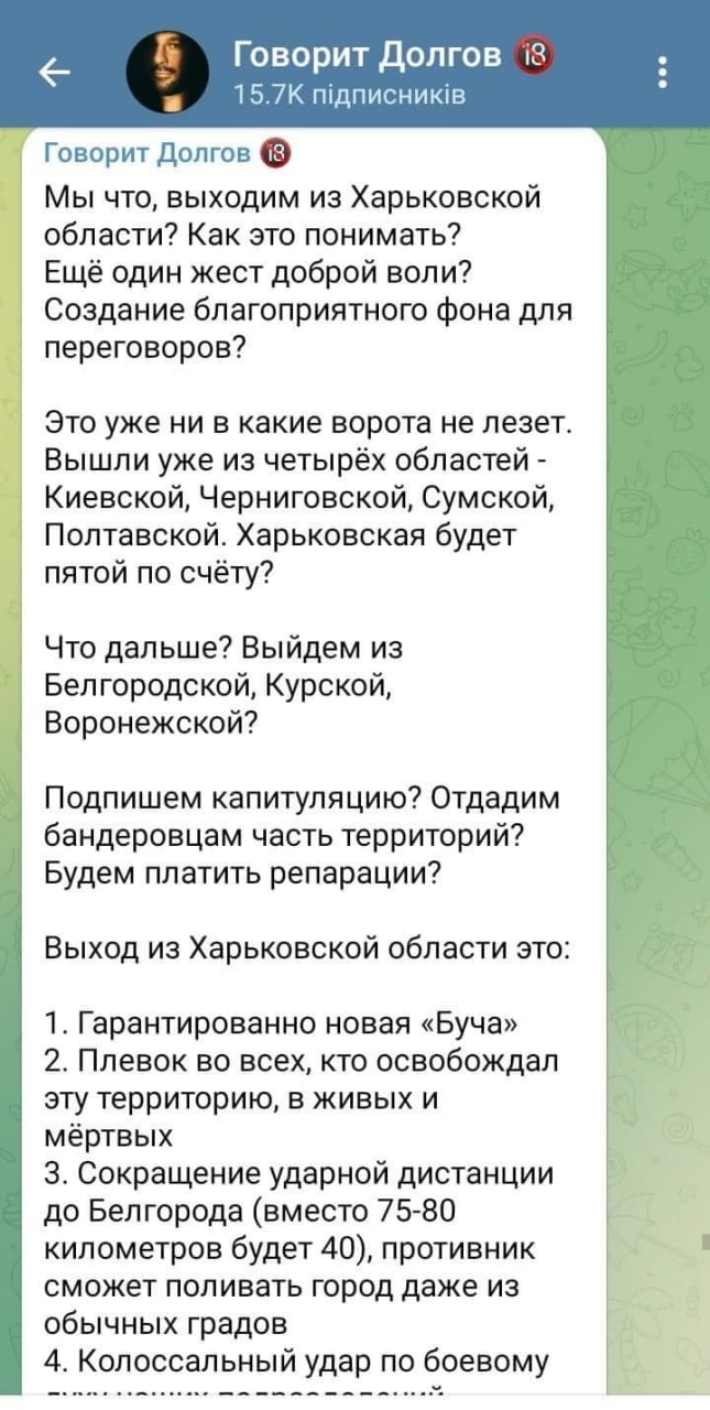 Запад слаб. Война второй месяц идет, а они уже спорят о нефти и газе <.....> Тогда-то и обменяем санкции на территории.
