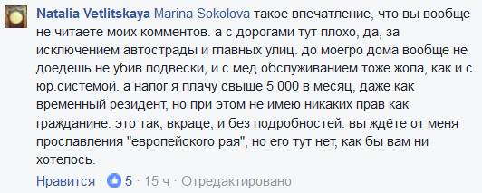 Если Ветлицкой не нравится Испания, пусть переедет в другое теплое место. Таких мест в Европе полно. Потом также будем вместе читать ее откровения.