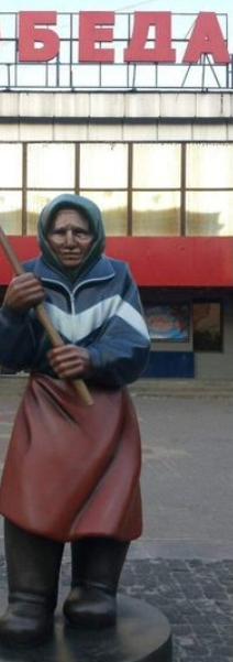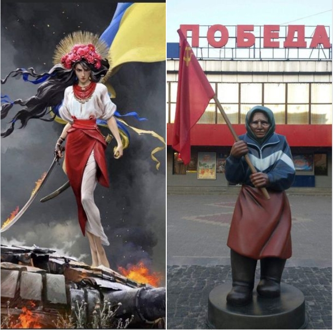 В России из этой бабушки сделали символ. Появилась информация, что она из Дмитриевки Киевской области. Появилась информация, что ее чудом из-под носа украинских карателей выкрал сын и вывез в Россию (назывался даже, прости небо, Барнаул). Появились муралы с изображением бабушки. Появились люди, посаженные на осквернение муралов с изображением бабушки. Появились памятники бабушке. Были снесены памятники бабушке, потому что люди на них карабкались. Сегодня утром чудовищный памятник бабушке поставили в оккупированной части Мариуполя!