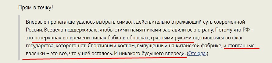 Как это меняет факт, что вся российская пропагандистская кампания вокруг этой уродливой скульптуры поражает невероятным дурновкусием и убожеством?