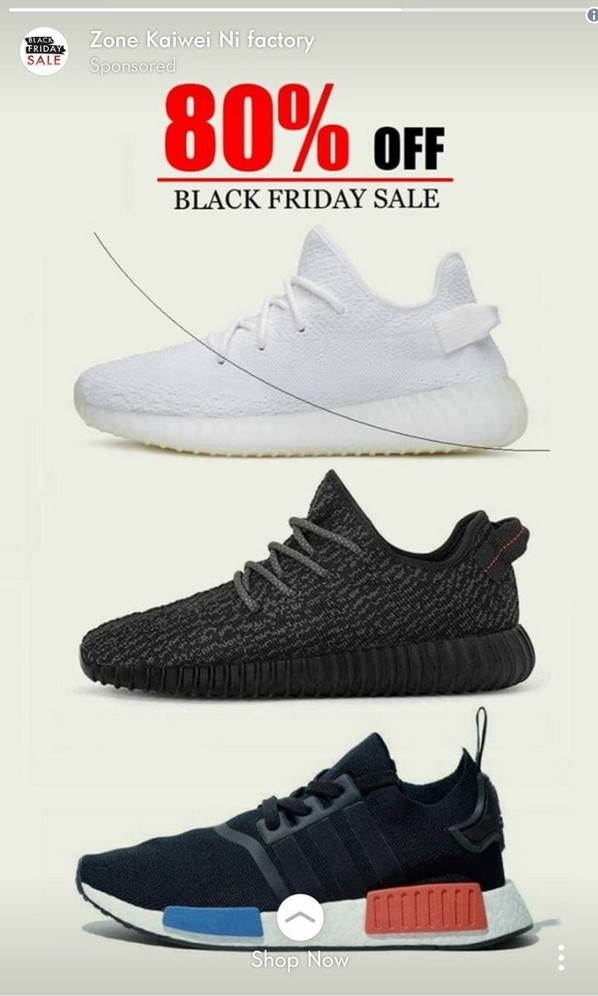 Китайская обувная фабрика Kaiwei Ni разместила в инстаграме, пожалуй, самую мерзкую рекламу. На объявление, рекламирующее «Черную пятницу» и кроссовки Adidas, был помещен очень реалистичный человеческий волос — чтобы пользователи принимали его за настоящий и свайпали вверх, переходя на сайт рекламодателя. (Отсюда.)