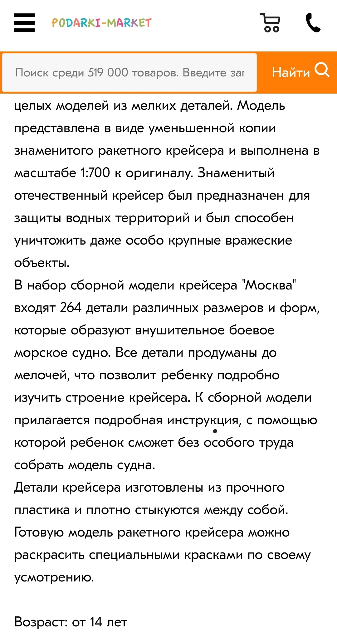 Должно бы пользоваться бешеным успехом. Я с детства испытываю особую любовь к сборным моделям. Как стоял в местном магазине "Хобби" и как в музее созерцал в витрине собранные модели: "Худ", а напротив него "Бисмарк", которые продавались тут же. "Москва" напросилась на подобный же колорит.