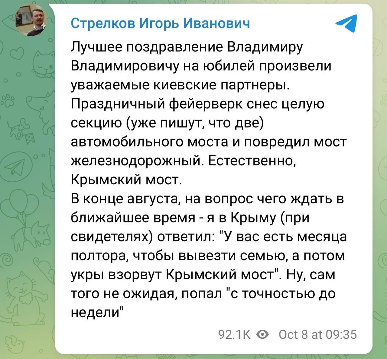 «Не разрушен, а всего лишь поврежден». «Медуза» узнала, как администрация президента рекомендует государственными СМИ писать о взрыве на Крымском мосту