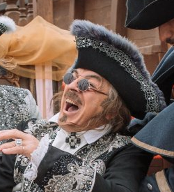 Потом внезапно появляется Боярский в круглых солнечных очках и летней треуголке, отороченной серой норкой. Костюмер в фильме явно был человек пьющий, а возможно даже сама Вика Цыганова. Вообще де Брильи погиб во второй части саги, он закрыл своим телом Ягужинскую и умер у нее на руках. Что он тут делает? Хотя если учесть, что этим фильмом нужно пытать грешников в аду, все понятно. Боярский супер, он делает отличную пародию де Брильи, и постоянно пребывает в каком-то гротескном припадке. Немного в духе Saturday night live, поэтому очень смешно.