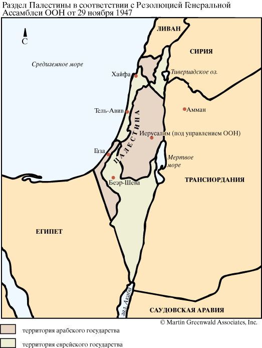 Т.е. с 30 ноября 1947 года по 14 мая 1948 не было государства Израиль. Соответственно, оно не могло коварно захватило Палестину принадлежащую мирным арабам (которой тоже не было, т.к. жили там и арабы и евреи).