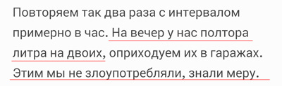 Прочитал историю на Анекдот.ру. История дурацкая, но вот этот пассаж понравился. Полтора литра водки на двоих. Не злоупотребляли, понимаешь, знали меру.