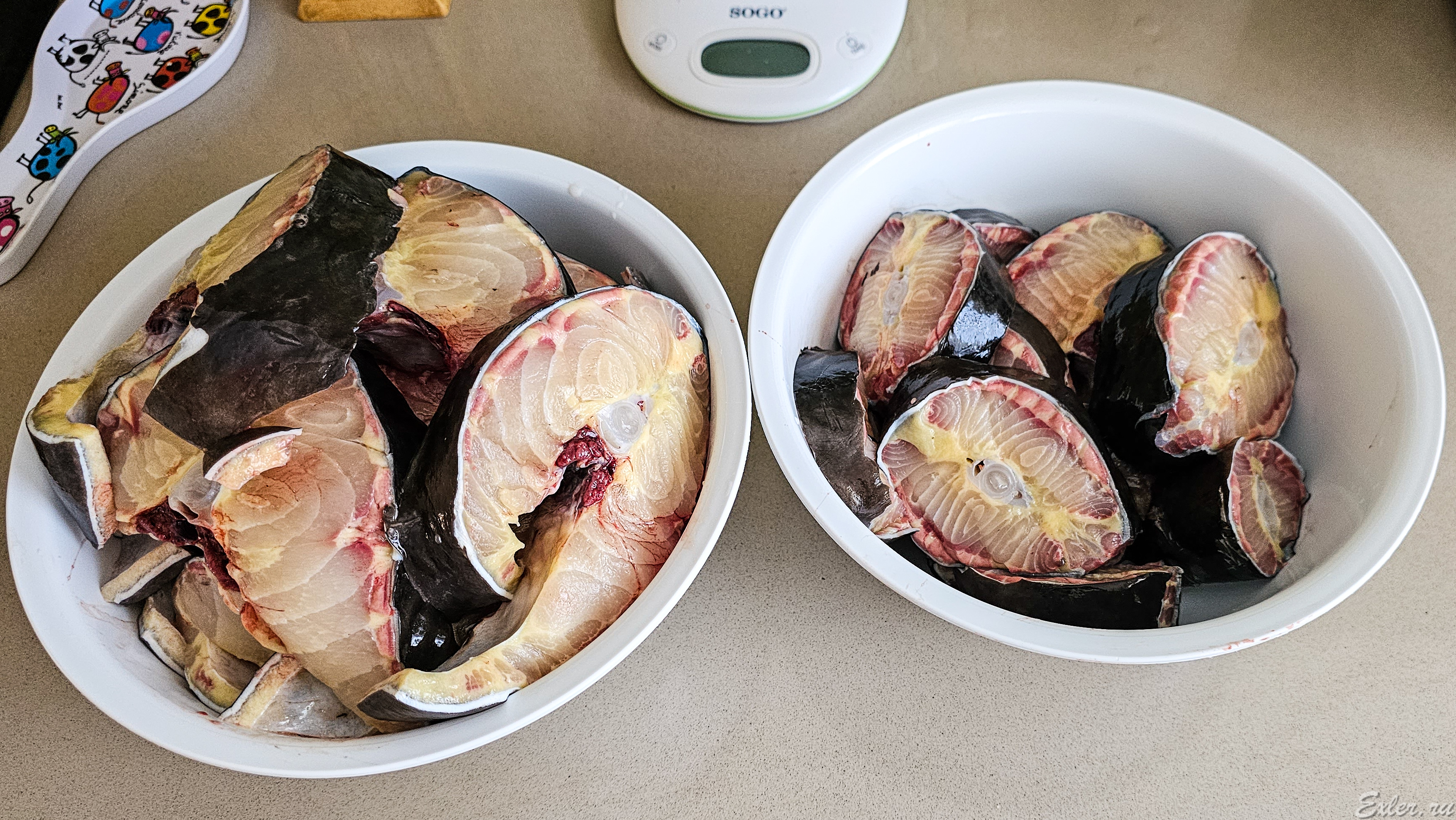 Разделал то же самое четыре дня назад по вакуумным пакетам и теперь с ужасом представляю, что в ближайшую неделю ежедневно - суп из осетра на обед и стейк из осетра на ужин😃. И еще жаль, что икра у них теперь только по 250 грамм…