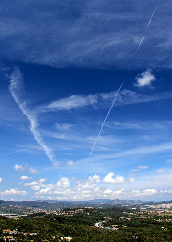 Это россияне с Ибицы домой летят. Слева в середине кадра виден след самолета Люфтганзы, это немцы, заметив наших сваливают на обочину. Во избежание.
