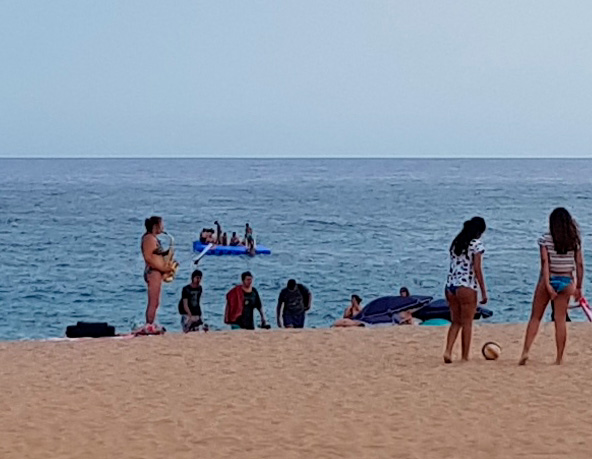 Вчера видел совершенно психоделическую картину. Пляж. На пляже стоит пюпитр с нотами. Рядом тетя в купальнике играет на саксофоне по этим нотам. Играет очень фигово - явно новичок, только начала заниматься.