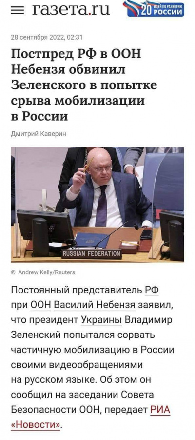 Скажите кто-нибудь этому Небензе, что Зеленский не только мешает нашей мобилизации, но он и всю СВО нам испортил. Совсем.